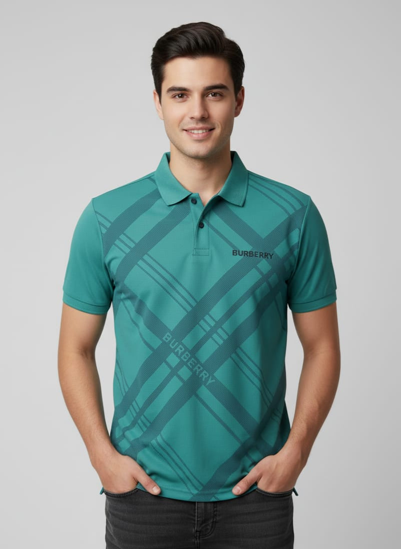 Step into refined casual style with this premium green Burberry polo T-shirt, designed to elevate your everyday wardrobe. Featuring the brand’s iconic check pattern reimagined in a bold yet subtle tonal print, this piece blends heritage luxury with contemporary fashion. The polo is crafted from high-quality, breathable fabric that ensures a lightweight, soft, and comfortable fit, making it ideal for both warm-weather days and year-round wear.